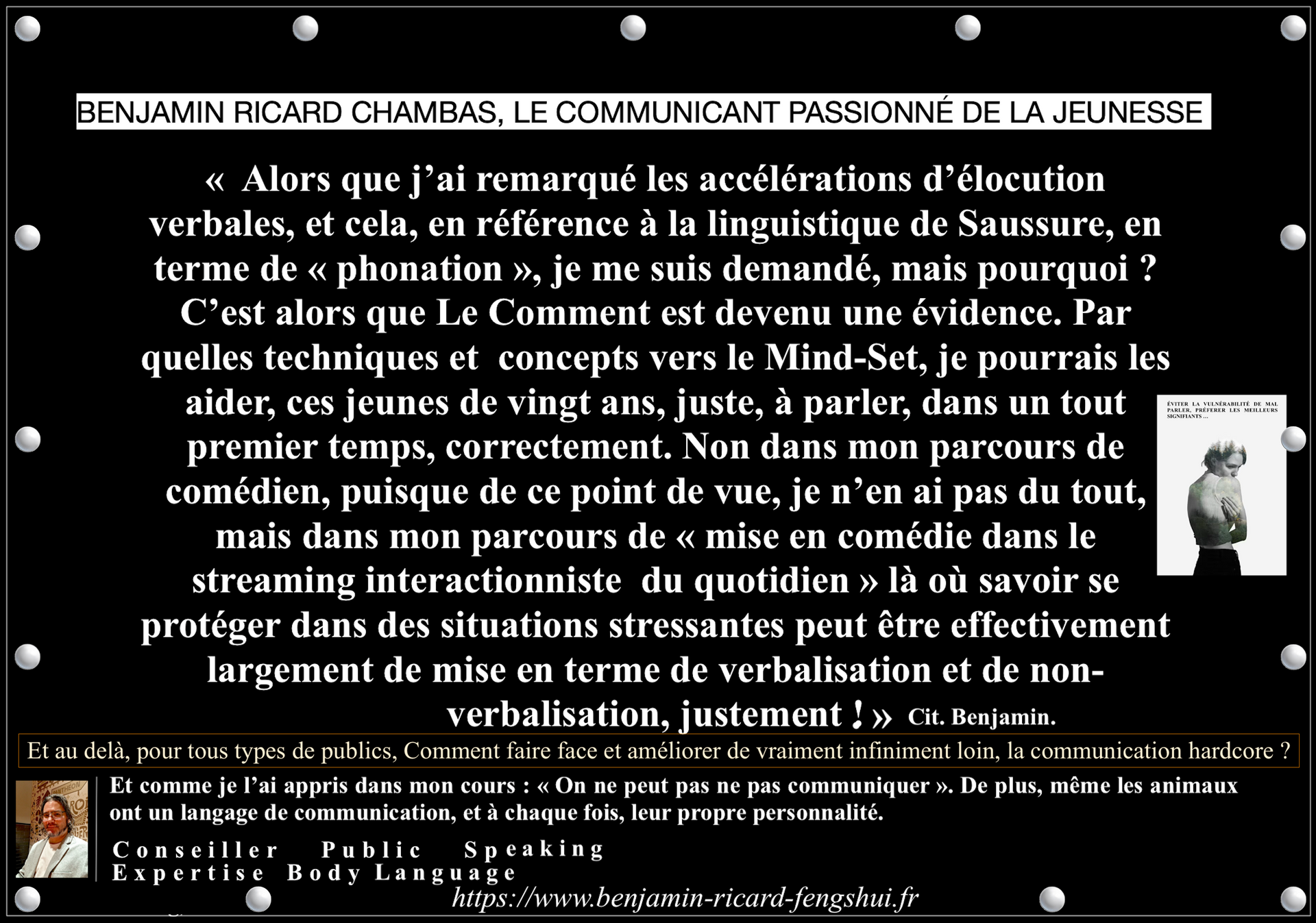 Sous forme de conseils, je peux donc : vous aider à "mieux comprendre", "mieux situer", "mieux tolérer", et "mieux se préserver", "mieux s'économiser" des crises, des comportements, ou des escalades d'agressivité potentielles, dans les interactions sociales qu'elles soient en milieux ouverts ou milieux fermés.