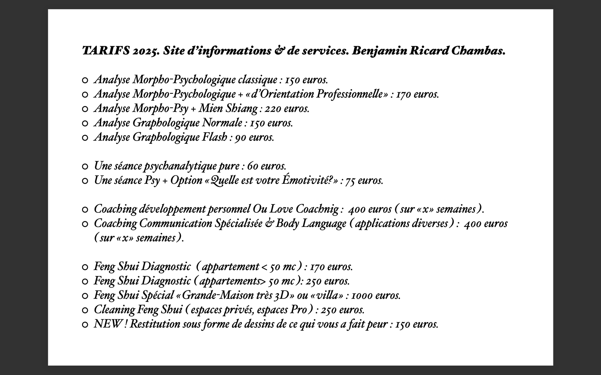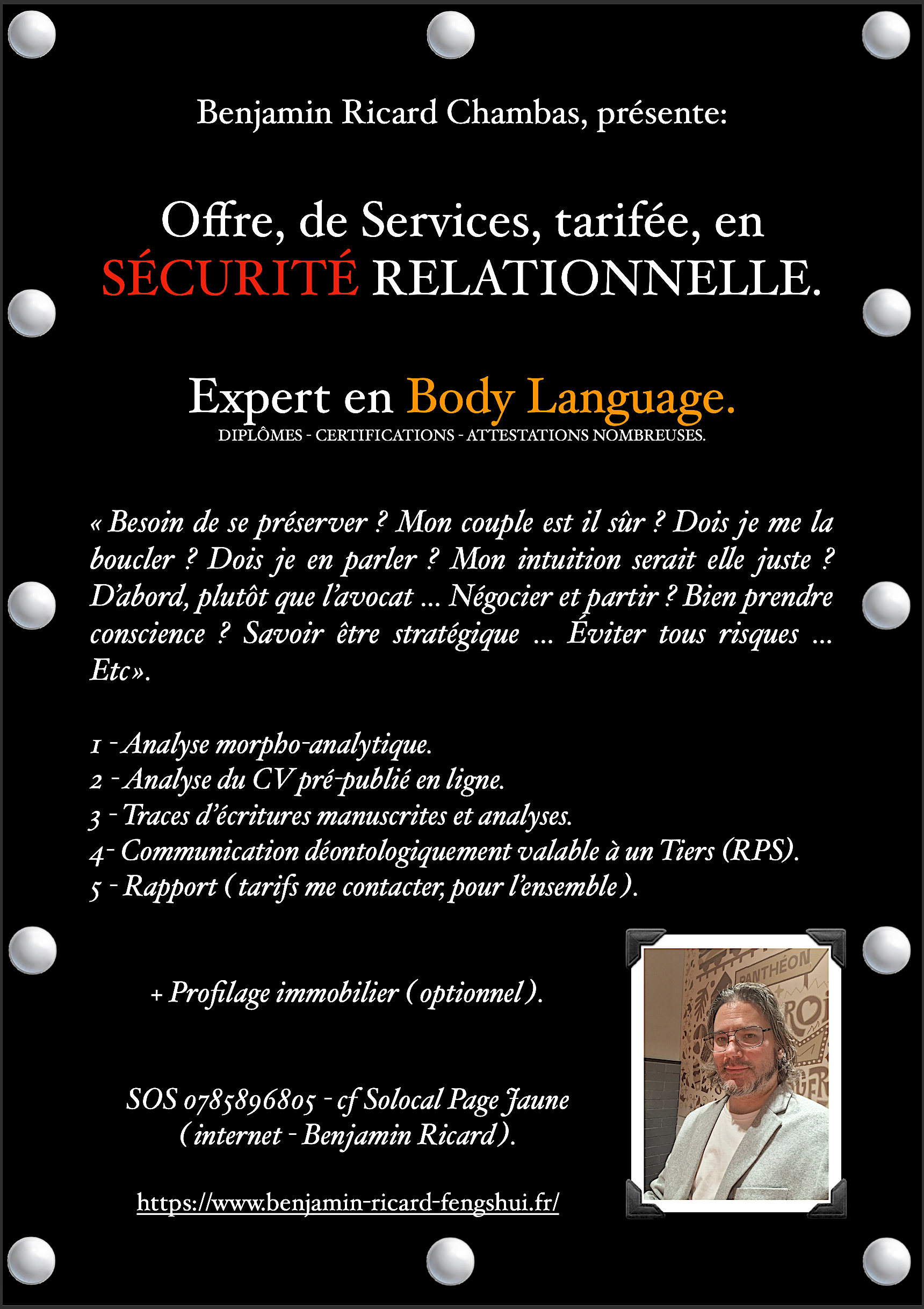 Spécialisé en Feng Shui, je possède également des compétences approfondies en graphologie, morphopsychologie, psychanalyse et une solide formation en histoire et philosophie des sciences et de l'esprit.