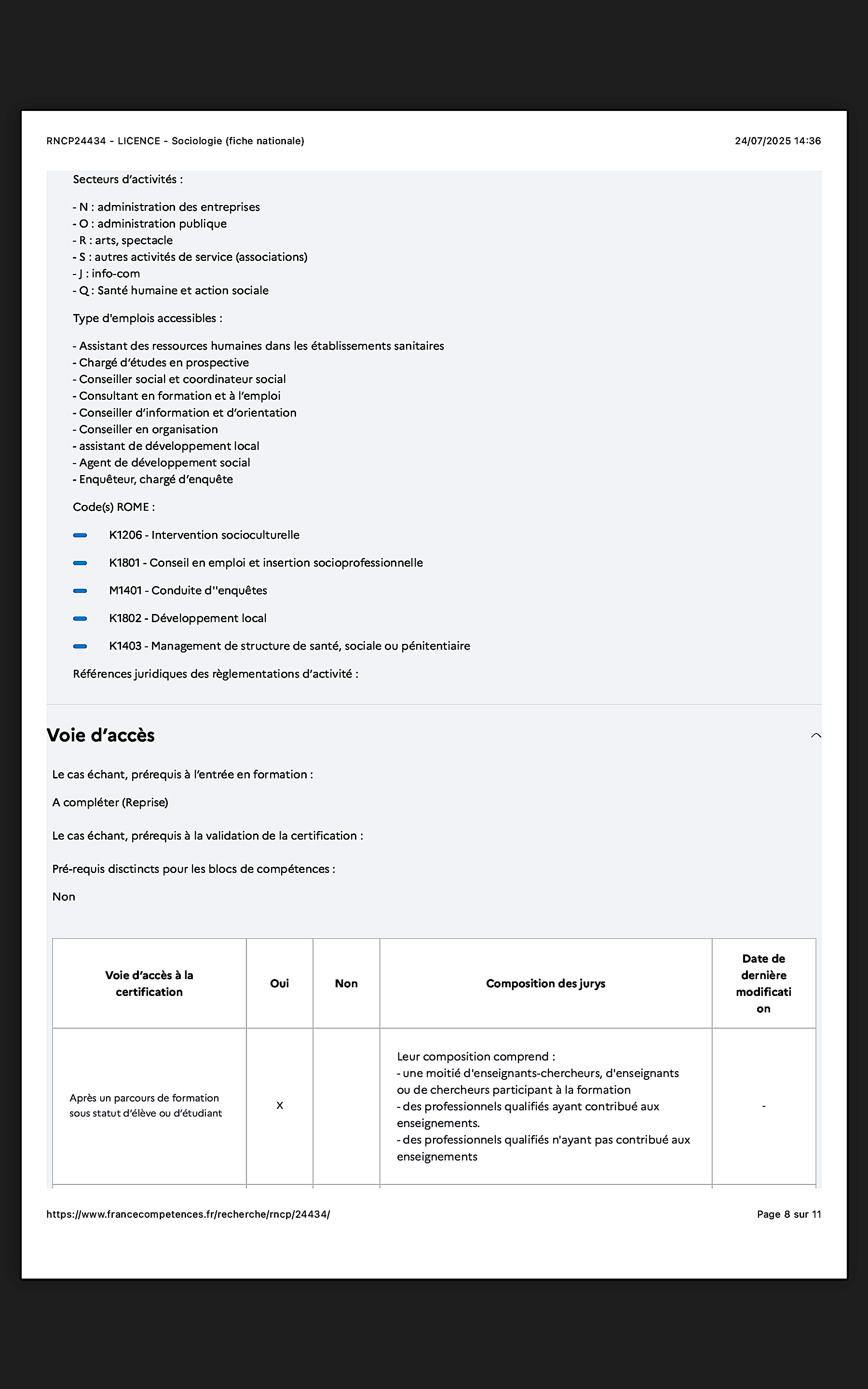 Voyez que de cette compétence de l'EHESS en sociologie des sciences, histoire et philosophie des sciences et de l'esprit, sur un cursus depuis l'université Paris VIII, entre 2025 et 2029, je peux devenir Data Scientist. Ce métier est celui d'un enquêteur à partir de bases de données publiques, ce que l'on appelle le Big Data développé dans une époque toute récente. Il sait structurer des bases de données pour les rendre claires et intelligibles, selon une demande précise. Donc, je cherche pour vous. Je fais l'enquête.
