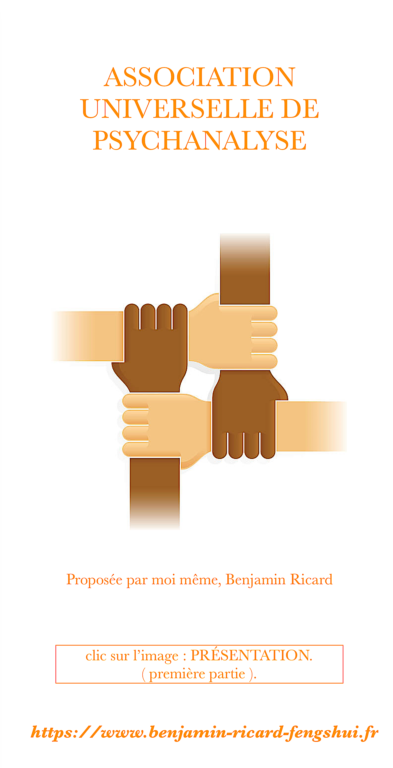 L'association universelle de psychanalyse n'a d'autre voeux ou ambition que de créer le débat constructif d'une nouvelle donne, celle qui n'a de lieu qu'en sa soustraction au Holisme statistique.