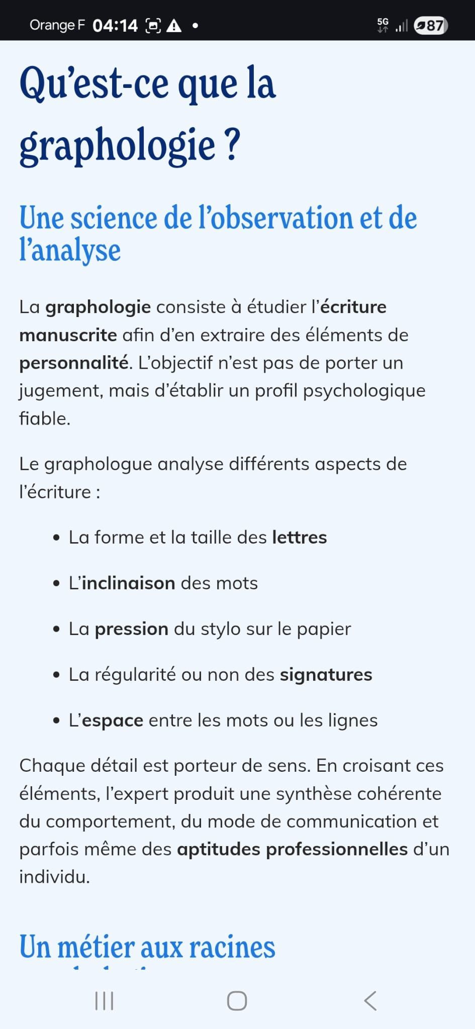ici cela regroupe dans mes compétences : la morphopsychologie, la graphologie-caractérologie, essentiellement.