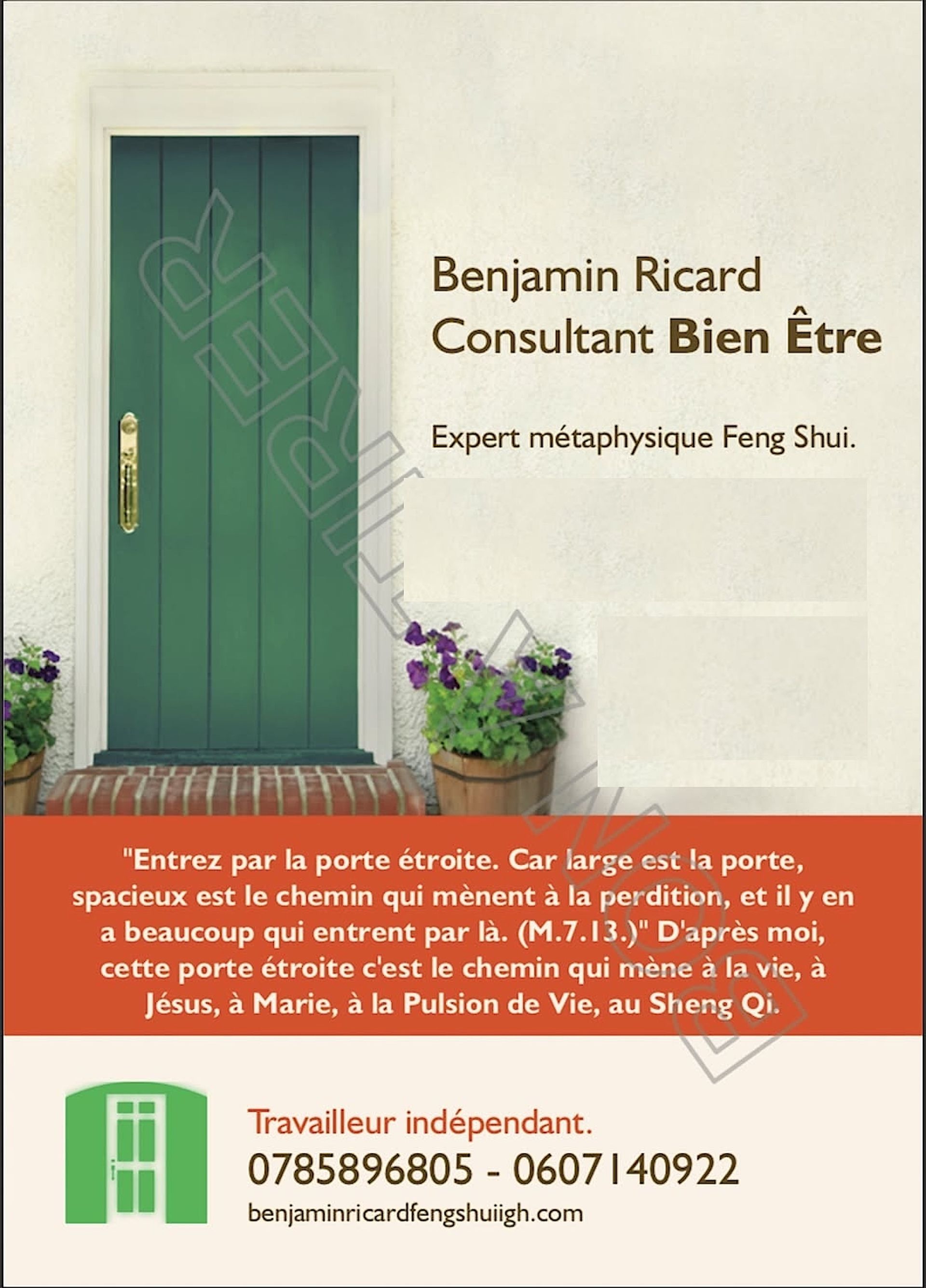 Comment VOUS pouvez faire appel à mes compétences en Feng Shui, pour que l'Environnement Vert, soit le plus éloigné d'un Feu potentiel ou un Feu actuel, de sorte de participer à un Programme Préventif de lutte contre les incendies, et de préserver la richesse du biotope contre sa réduction ou son artificialisation ? Etc.