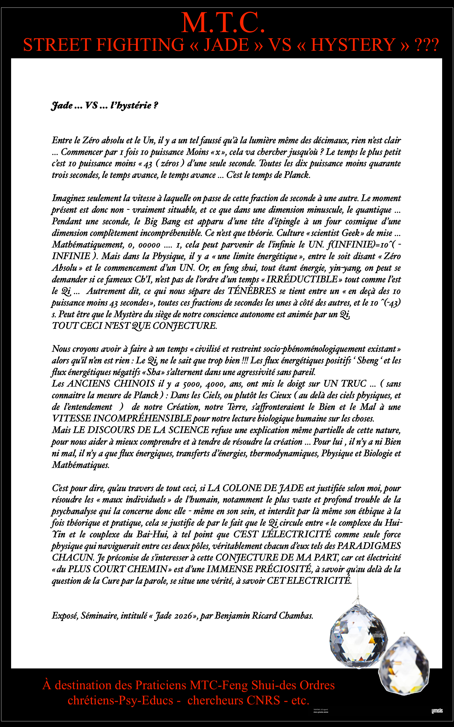 LE FENG SHUI ET LA M.T.C. SONT TRANSVERSAUX, AVEC LA PSYCHANALYSE