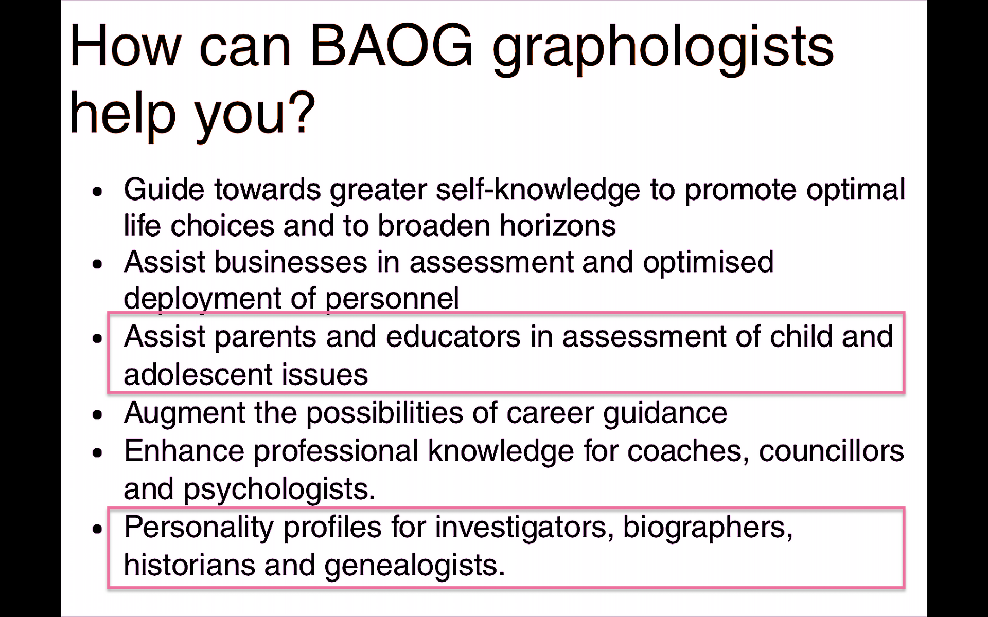 La graphologie m'a permise personnellement de mieux me connaitre moi même en complètement à être analysant, sans oublier ma morpho-psychologie pour mon relief ostéo-bossué ( cf édition Que Sais Je La morphopsychologie ).