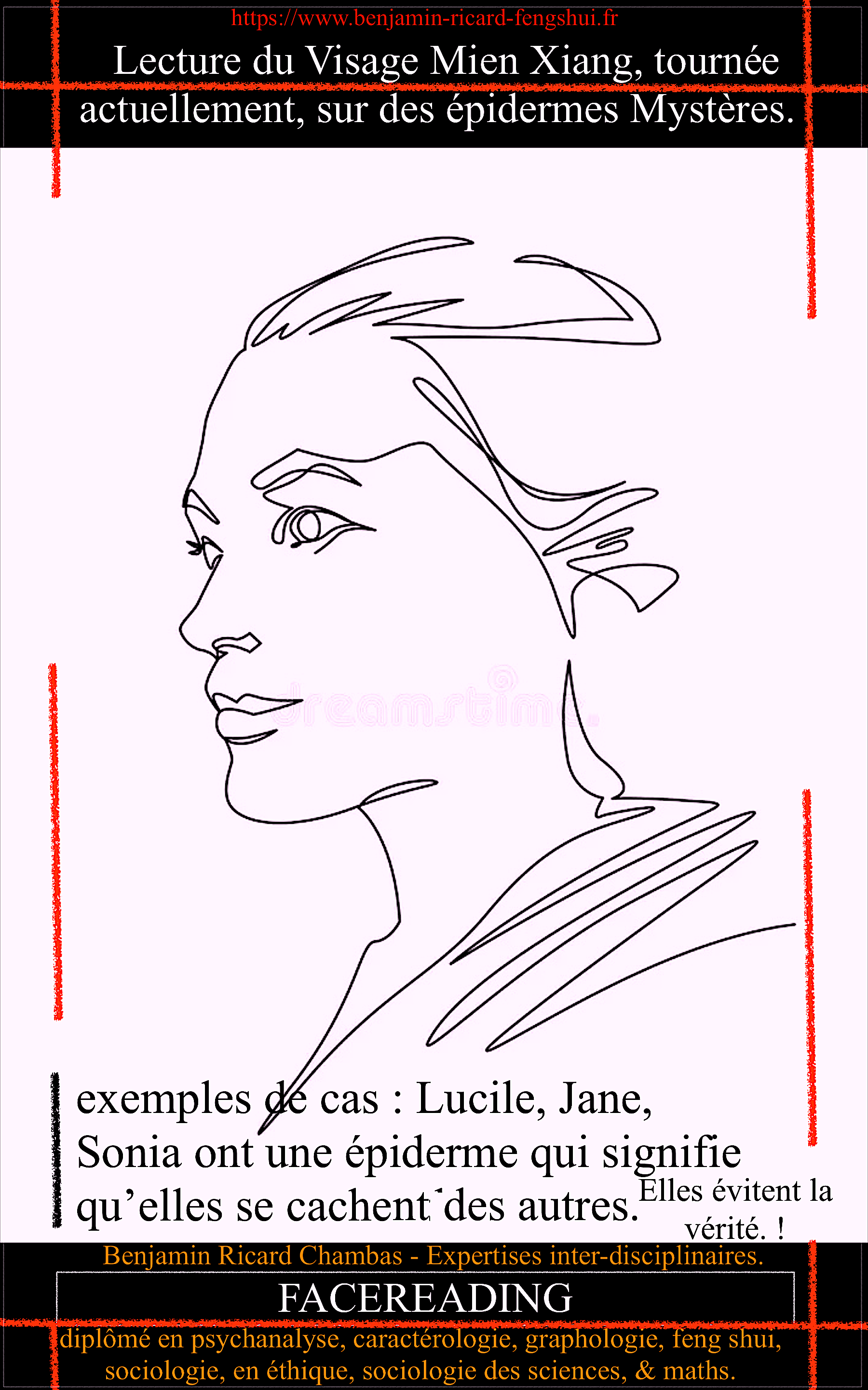 "Mien Xiang est une pratique vieille de près de 5 000 ans. Le terme signifie lecture du visage (mien) (shiang). C’est l’une des cinq branches de la médecine taoïste. Cette forme d’art complète d’autres études métaphysiques telles que le Ba Zi (lecture du destin) et le Feng Shui (étude de la terre). La lecture faciale utilise plusieurs cartes et utilise le plus souvent une carte faciale de 100 ans. Chaque position représente une seule année de votre vie afin d’identifier les zones de disharmonie dans le corps ainsi que les événements physiques et émotionnels traumatisants qui ont eu un impact sur un flux d’énergie sain. En même temps, cela peut être considéré comme un moyen de prédire votre avenir.