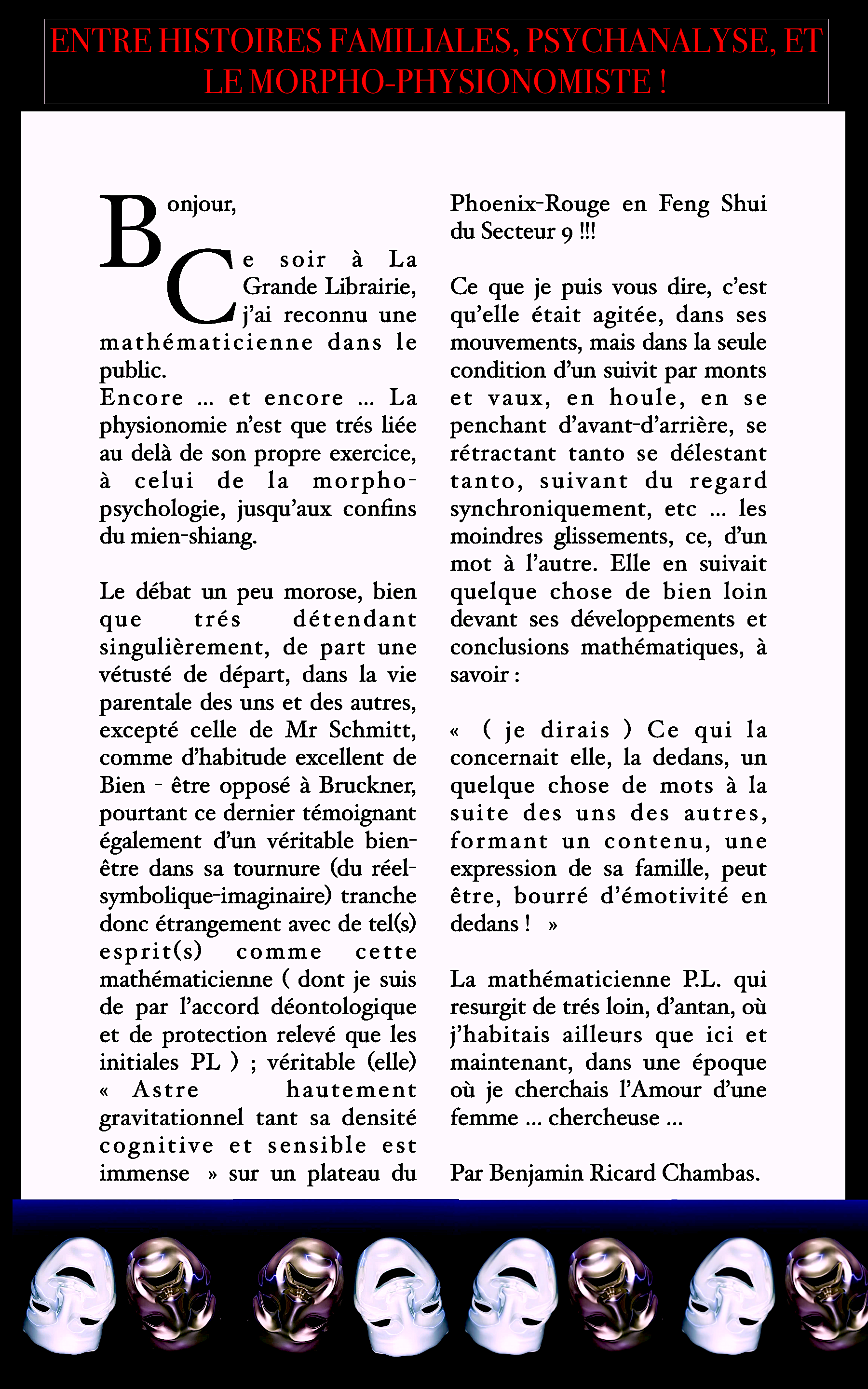 Voyez donc vous mêmes, mais s'il vous plait n'avancer pas une étagère de critiques, en contre point à ma conjecture, car je ne fais que "chercher" et ce, "en tant que chercheur indépendant issu d'une longue formation en sociologie des sciences" : (diplômé de) baccalauréat sociologie, licence sociologie, D.U. sociologie des sciences et mathématiques, master Histoire et sociologie des sciences EHESS, entre autres ... Graphologue-Morpho-Analyste d'orientation lacanienne, sans l'oublier... Sans parler du Mien Shiang Feng Shui que j'applique chez l'Humain actuellement...