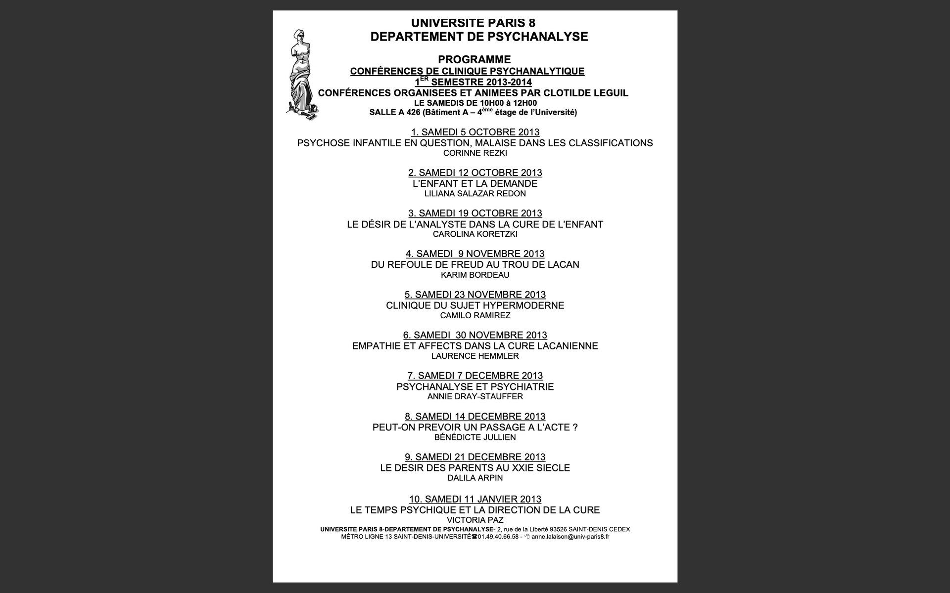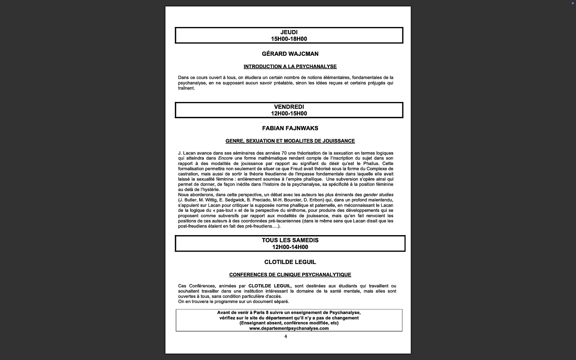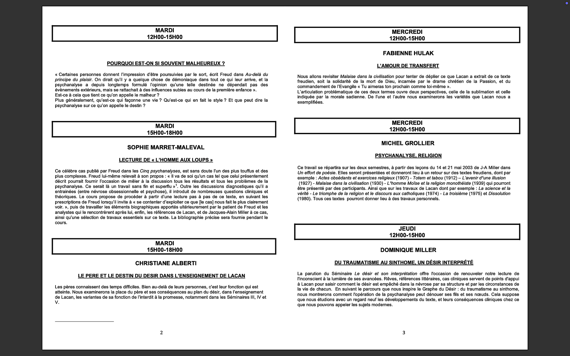 Tout d'abord, ma formation de base en psychanalyse lacanienne : "Qu'est-ce que la psychanalyse ?"