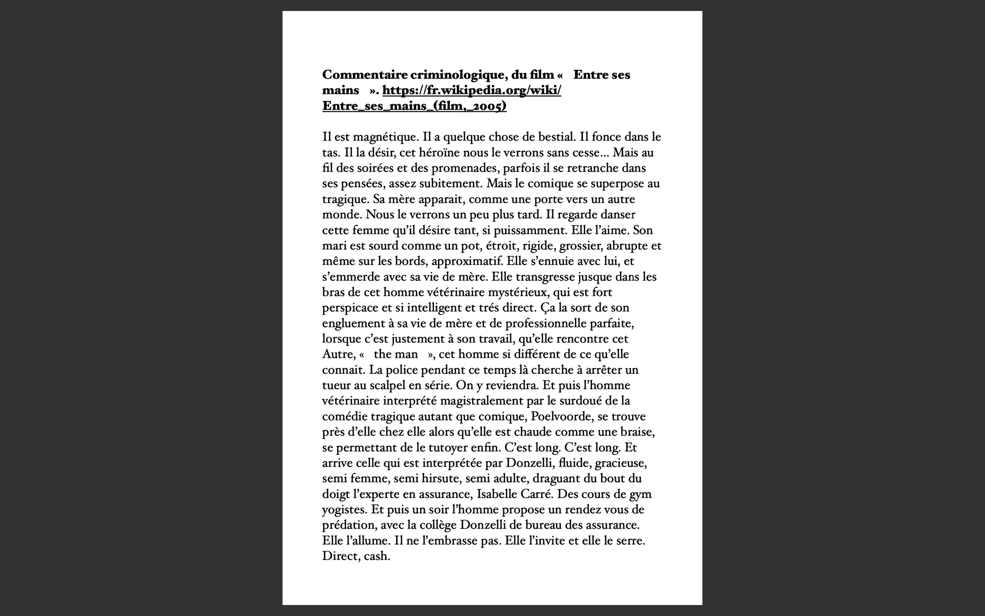 CE TEXTE PARTICIPERAIT À DÉMONTRER MA COMPÉTENCE ANALYTIQUE ET CRIMINOLOGIQUE