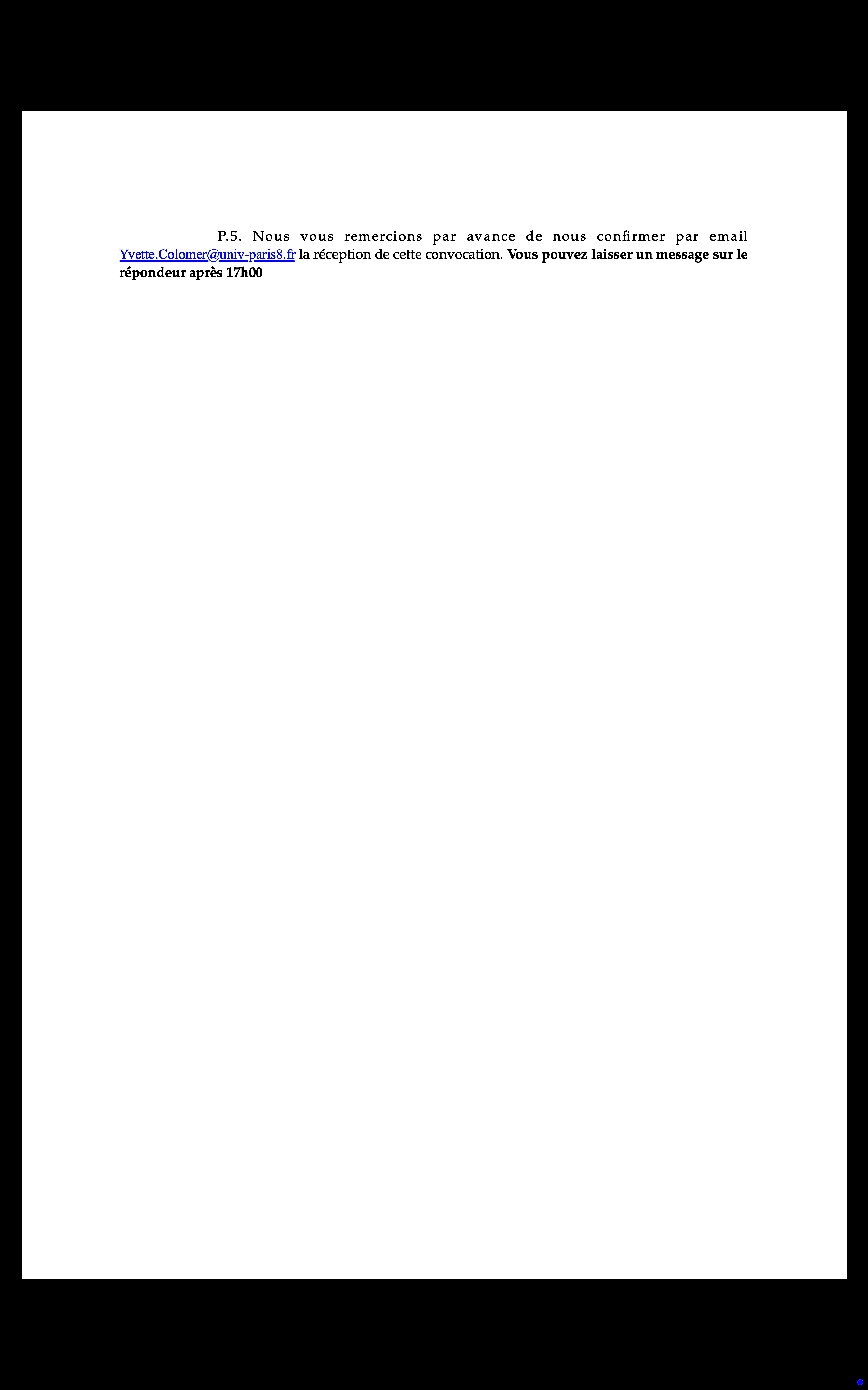 M E CONTACTER POUR POSITIONNER LE RENDEZ VOUS E N PRESENCE D' UN CAS D' ETUDE DEMANDEUR ET ACCEPTANT LES CONDITIONS D ' U N E ECOUTE ACTIVE NOVATRICE MAIS DANS L A TRADITION PEDAGOGIQUE DU MASTER D E PSYCHANALYSE B I E N QU E N DEHORS DES SECTIONS CLINIQUES ADMINISTRATIVEMENT UNIVERSITAIRE, EN DEHORS DE