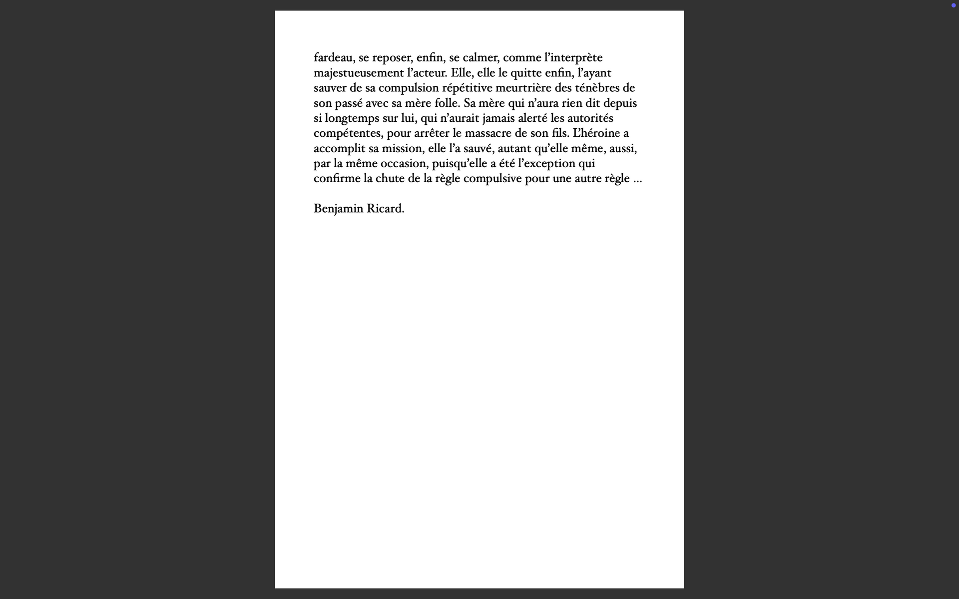En dehors de cet ajournement de ma part qui peut se valoir ambitieux, pourtant il n'en ai rien ( longues réflexions ), je remercie Lacan pour son effort de penser gigantesque et son investissement de l'avancée de la psychanalyse dont il nous dit que l'éthique de la psychanalyse est impossible.