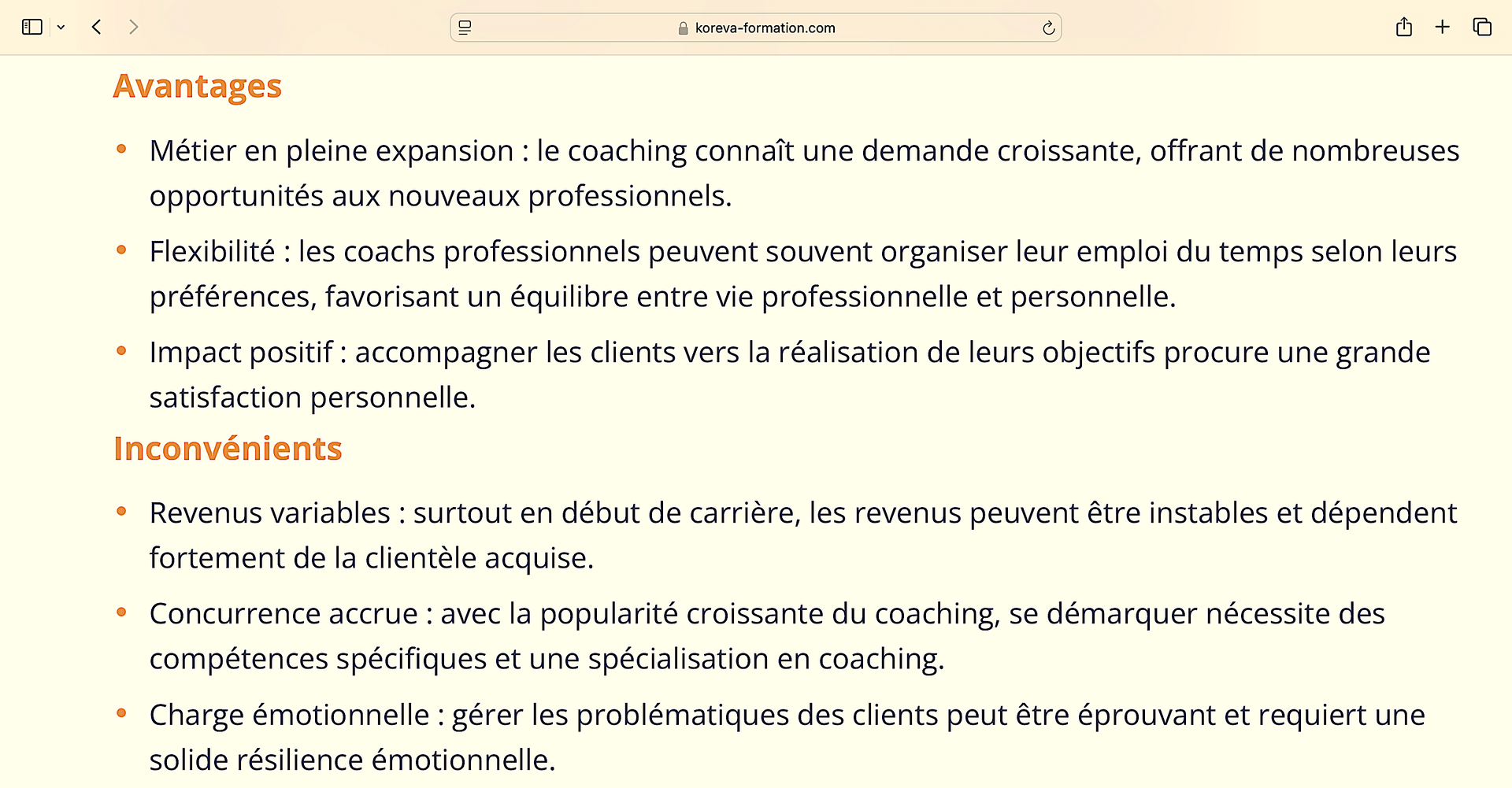 Même questionnaire, c'est commun à psychanalyste et coach en développement personnel et prise de parole en public.