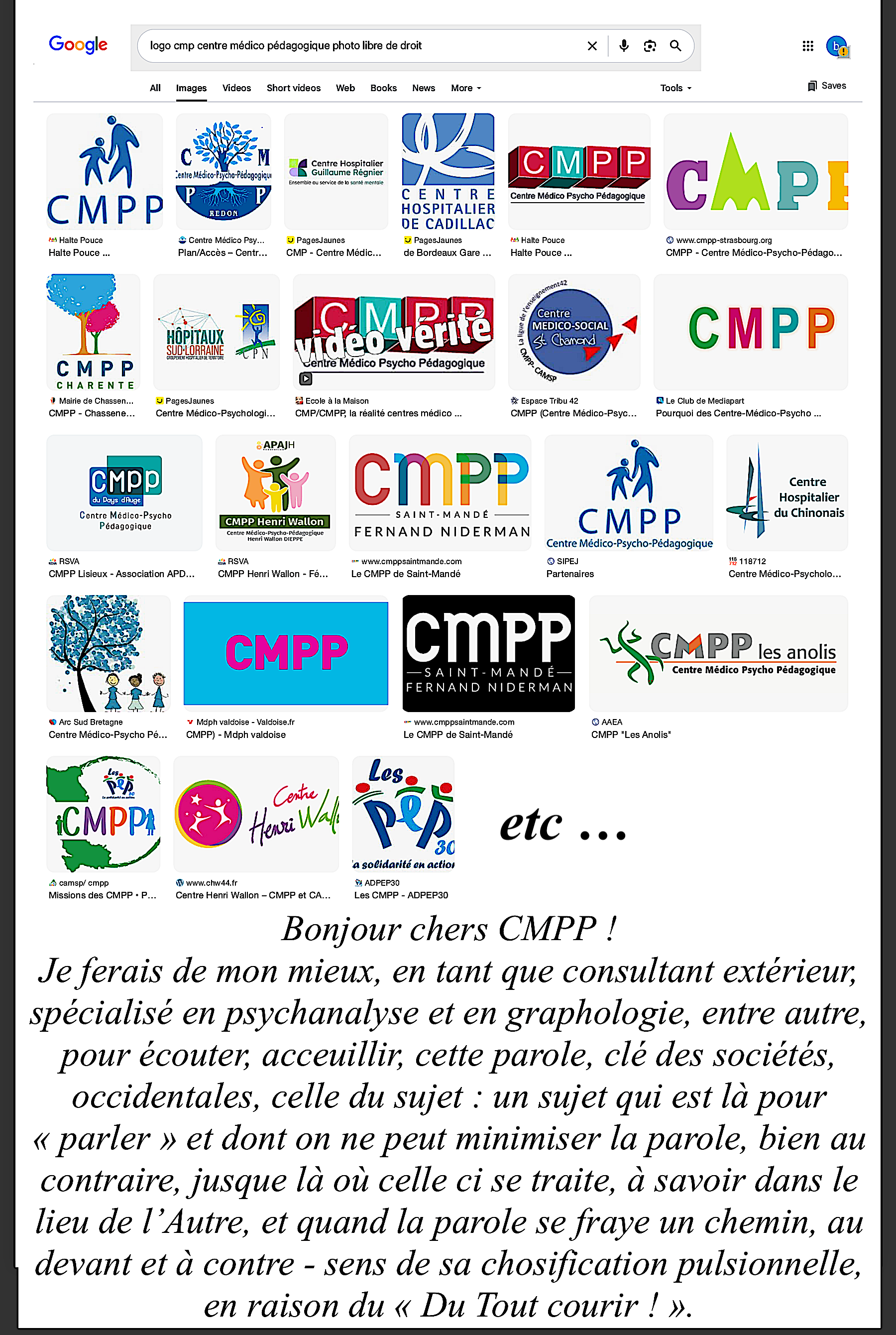 La BRIGADE DE LA PROTECTION DES MINEURS, pourra peut être je l'espère vraiment ainsi par conséquent faire appel à mes compétences, entre autre, pour ce qui est ici de l'ordre des troubles de l'enfants, plus structurels que conjoncturels.