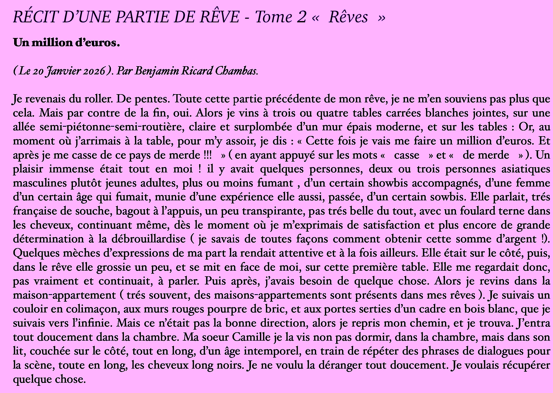 Je rêve et oui, et je les écrit, j'en suis au Tome 2