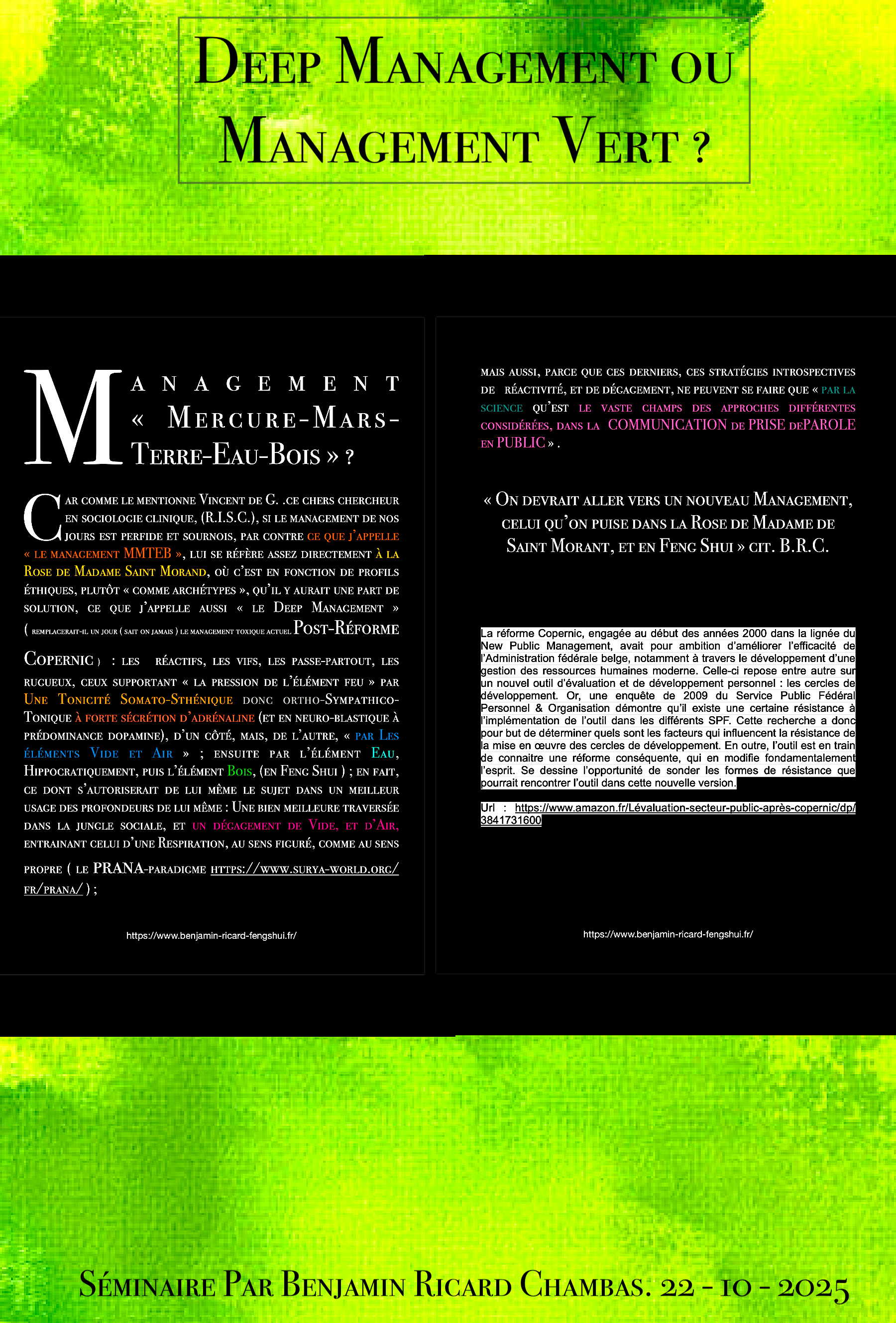 « On devrait aller vers un nouveau Management, celui qu’on puise dans la Rose de Madame de Saint Morant, et en Feng Shui » cit. B.R.C.