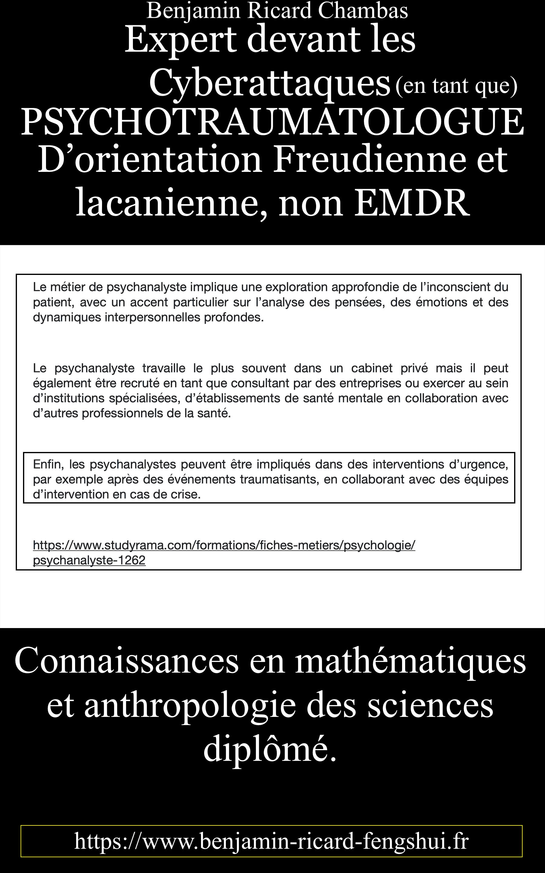 si lors de nos échanges et de l'expérience de passation de mes tests, de l'étude psycho-graphologique, et d'entretiens psychanalytiques, notamment, sans compter la part belle de retours de questionnaires ( rémunérés à hauteurs de tarifs compétitifs de ma part sauf les questionnaires qui sont gratuits évidemment ), RIEN N'A PU ABOUTIR c'est que je n'ai pas pu être à la hauteur ou que j'ai du abandonner l'avancée de mes recherches pour la raison INCROYABLE QUE VOUS ÊTES "UN CAS MÉTAPHYSIQUE PSYCHO-SOCIALEMENT". Je ne pourrais dans ce dernier cas que vous ORIENTER VERS UNE DESTINATION suivante : UN TAROLOGUE cartomancien ( tarot de Marseille version classique et la meilleure ) EXPÉRIMENTÉ. Et j'en connais deux.